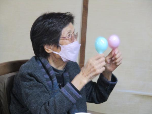 マラカスを持って応援しています。