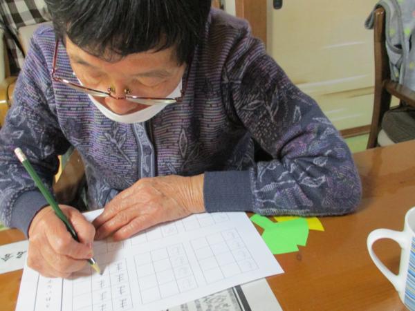 しっかり鉛筆を握って、文字をお手本を見て書くことによって