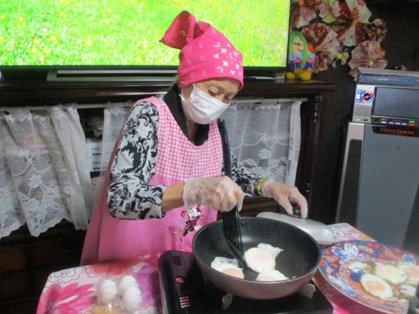 たまご料理が得意な母は目玉焼き作り🍳