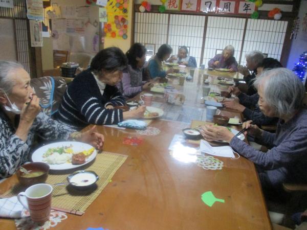 利用者さま同士、一緒に食卓を囲んで