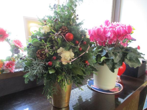 玄関扉を開けると、スタッフ手作りのクリスマスアレンジ🎄が