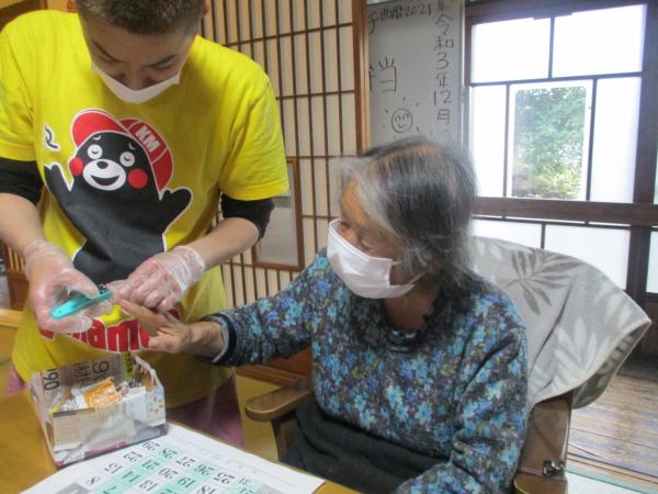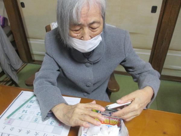 ご自身で切ることが出来る母は、爪切りを見守ります