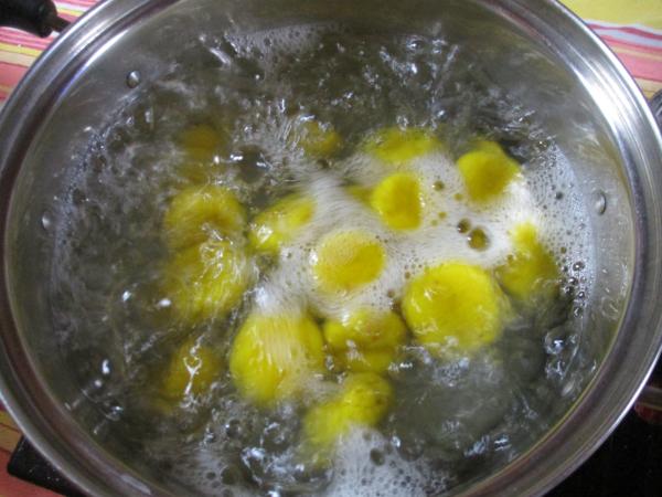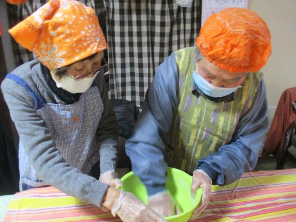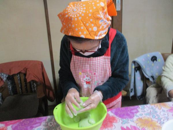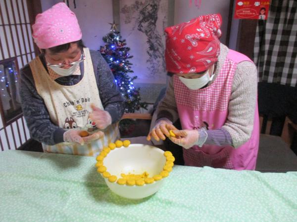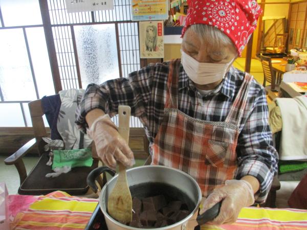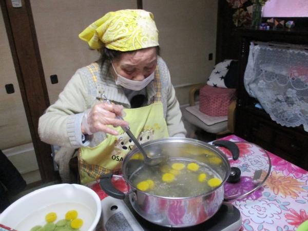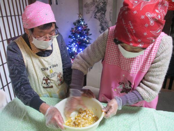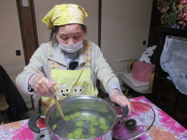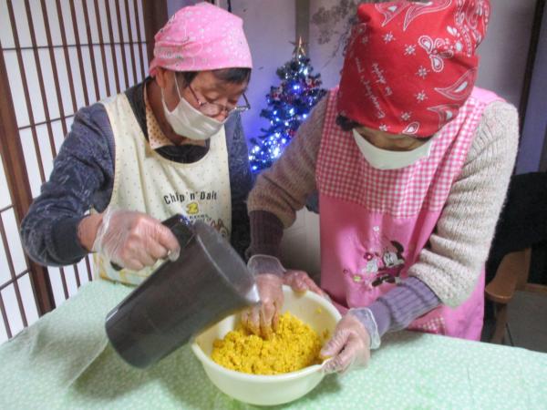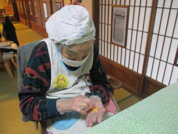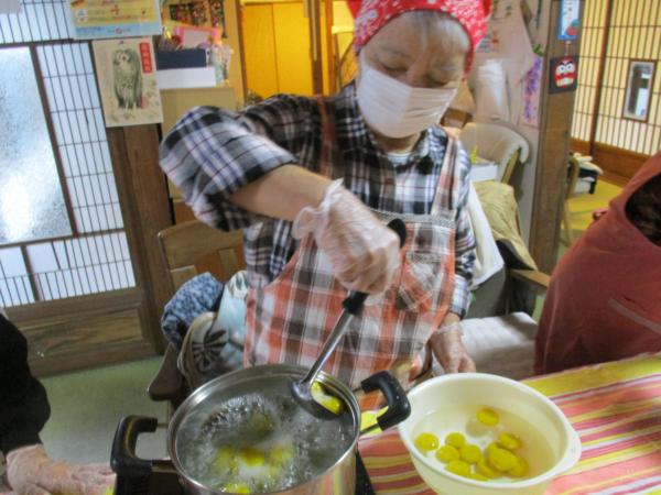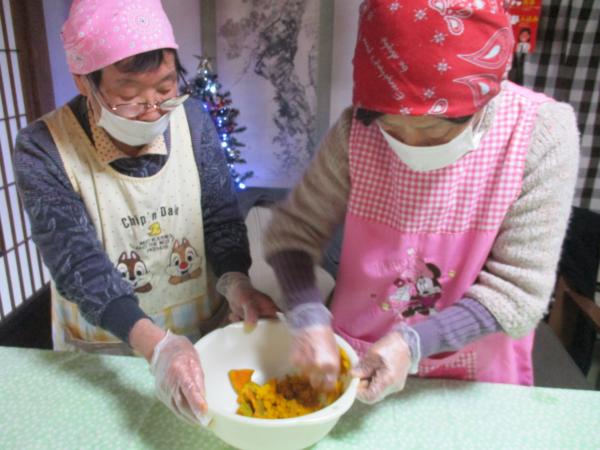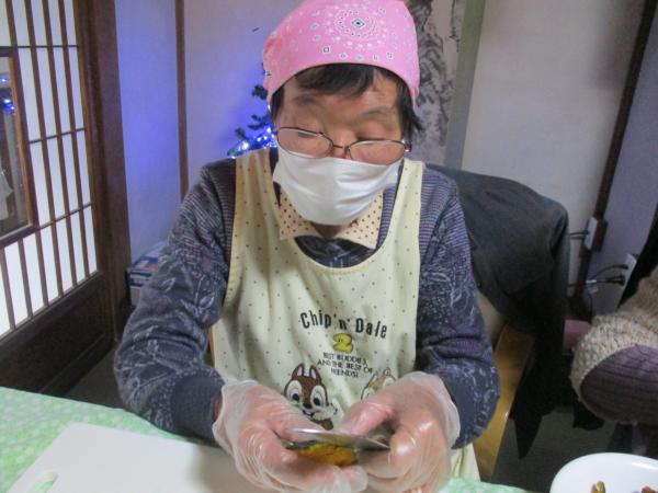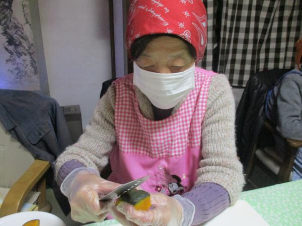 母たちには、かぼちゃの皮をむいてもらい・・・