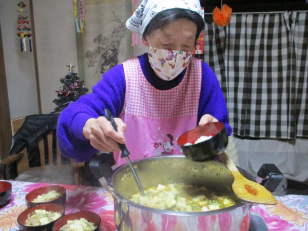 マーボー豆腐が完成しましたのでご飯の上に載せて下さい。