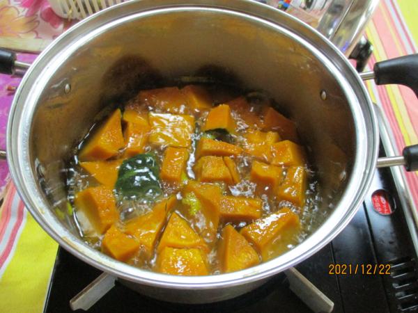 かぼちゃも柔らかく煮ましょうるんるん (音符)