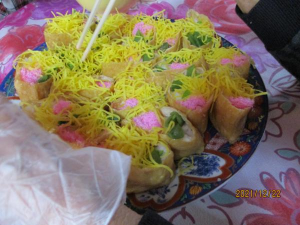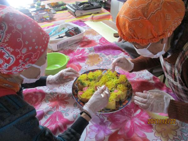錦糸卵、桜でんぶ、スナップエンドウをのせて・・・