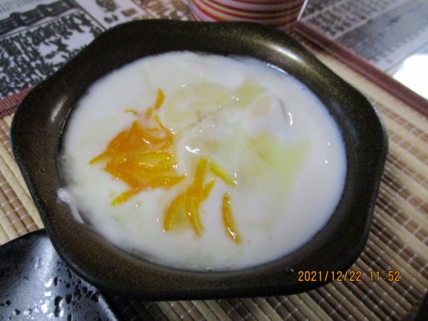 ゆずハチミツをのせた 豆乳バナナヨーグルトが出来上がりましたるんるん (音符)