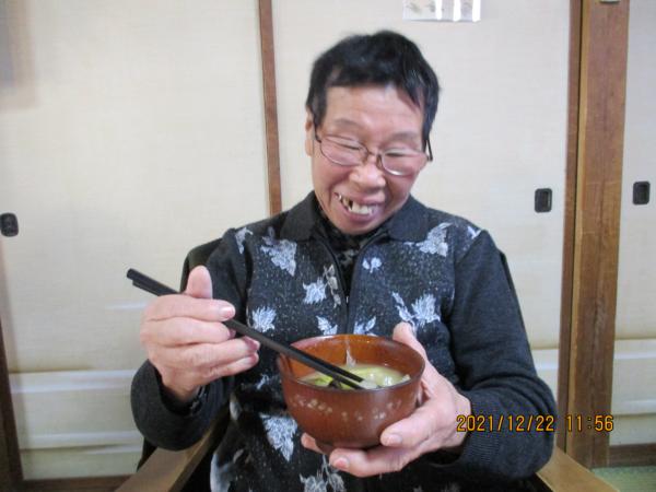 味噌汁の具材を煮ていきま~すわーい (嬉しい顔)