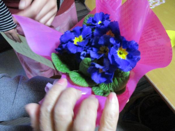 写真入り色紙とお花をお持ち帰りいただきましたほっとした顔