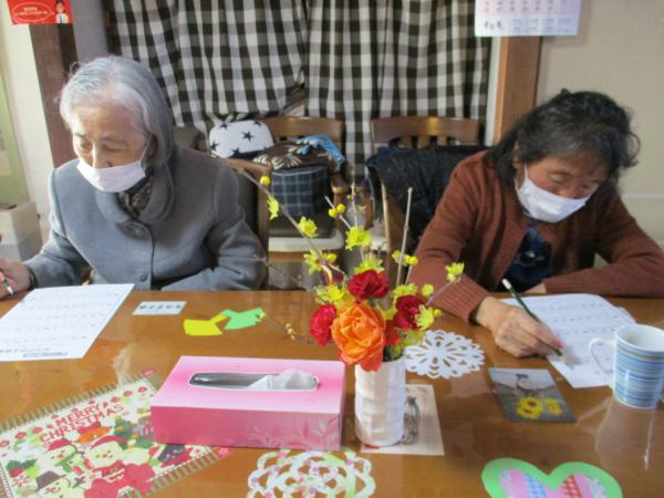 壁画に山茶花を飾ります。