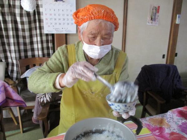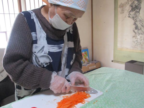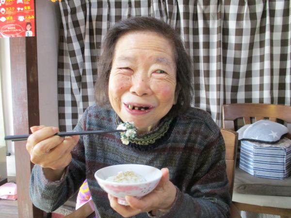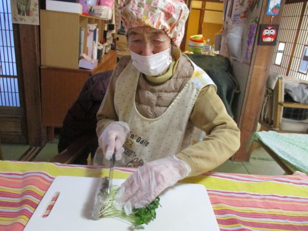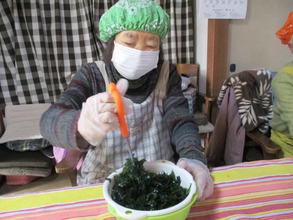 ワカメなど味噌汁の具材を食べやすい大きさに切って下さいます