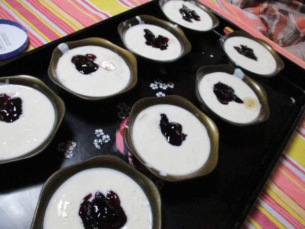 豆乳バナナヨーグルトには、ブルーベリージャムをのせました