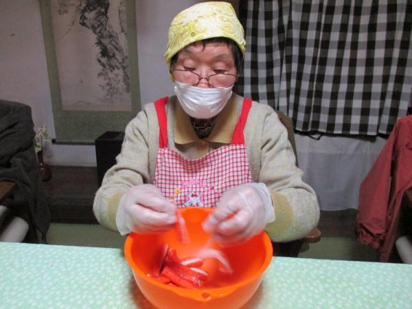 カニカマも細かくさいて指先の運動に
