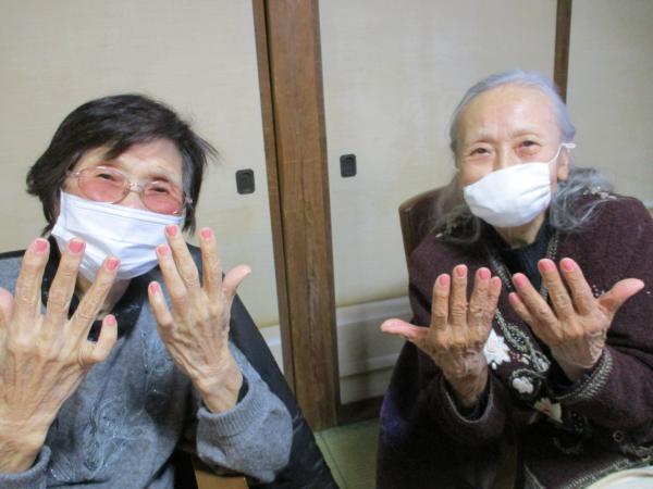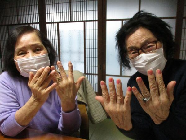 おしゃれなレッドなどお好みのマニキュアを塗って楽しまれました