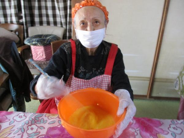 エプロン・三角巾・手袋・マスクをつけて
