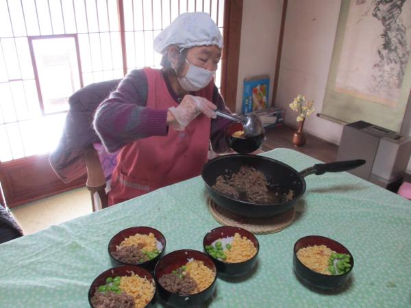 そぼろを盛り付け