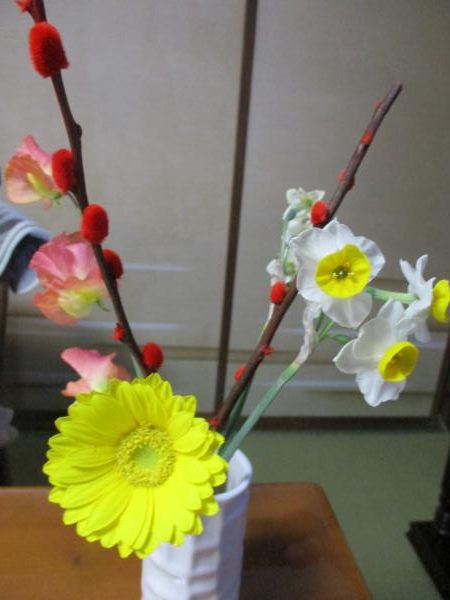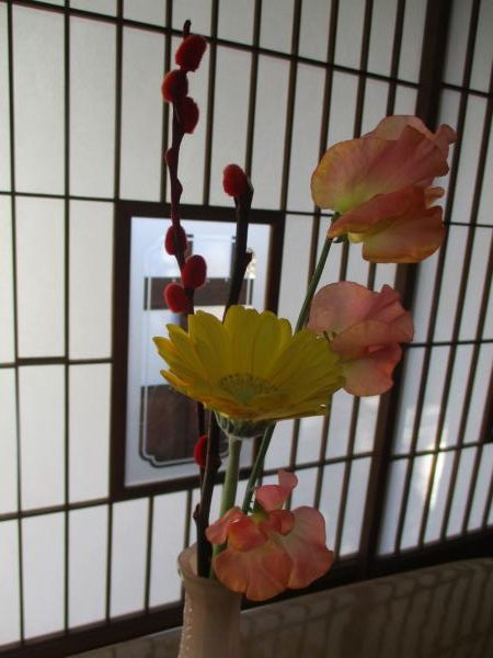 お花を飾って庵内も華やかに