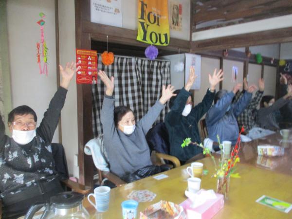 朝会ではバンザイを行い両腕を高く上げましょう。