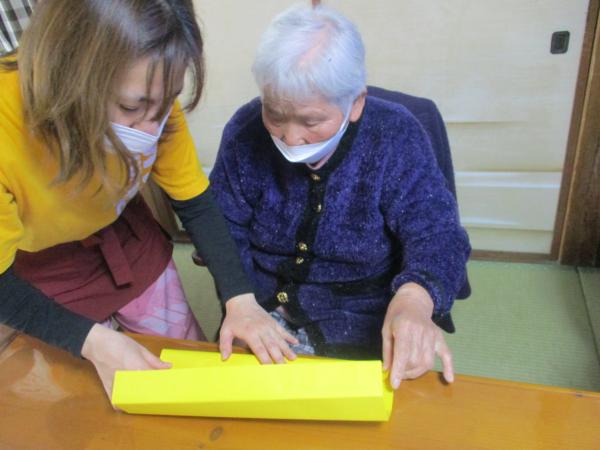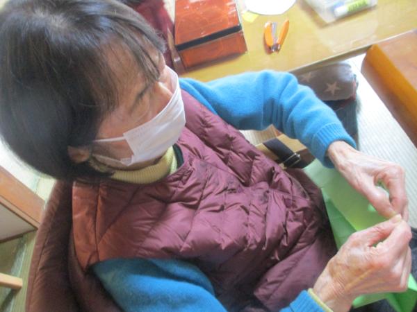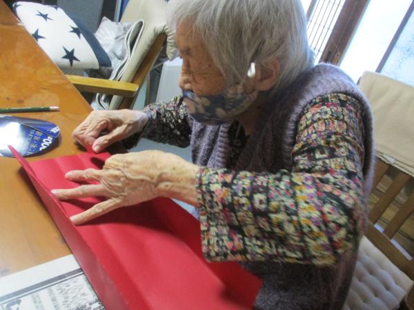 しっかりと折り目を付けた後に、手でちぎっていきます。