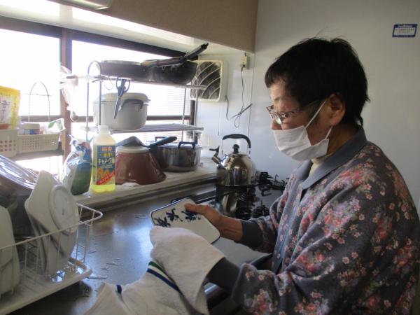 食器の片付けなど利用者さまたちがお手伝いをして下さいます