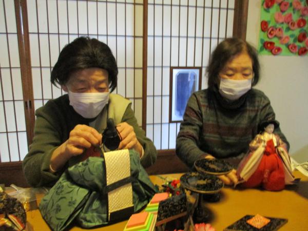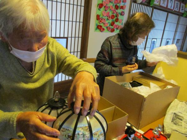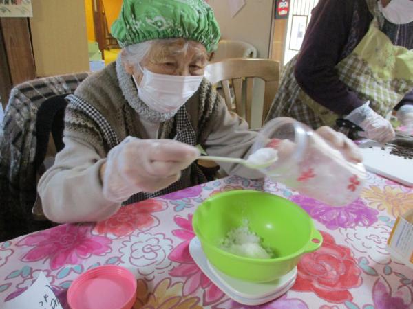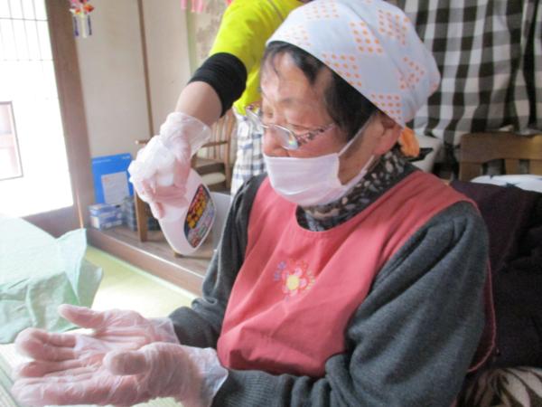 昼食作り同様、エプロン・三角巾・手袋・マスクを付けて
