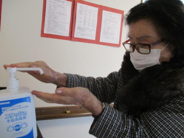来庵すると手指のアルコール消毒を行っています。
