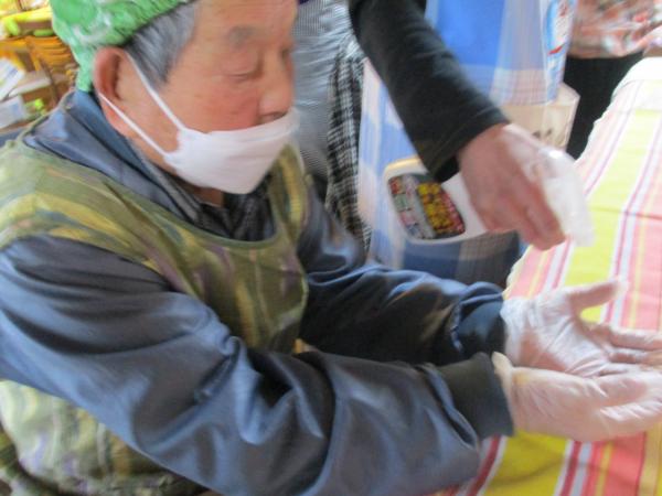 手指のアルコール消毒を行ってから調理のスタートです。