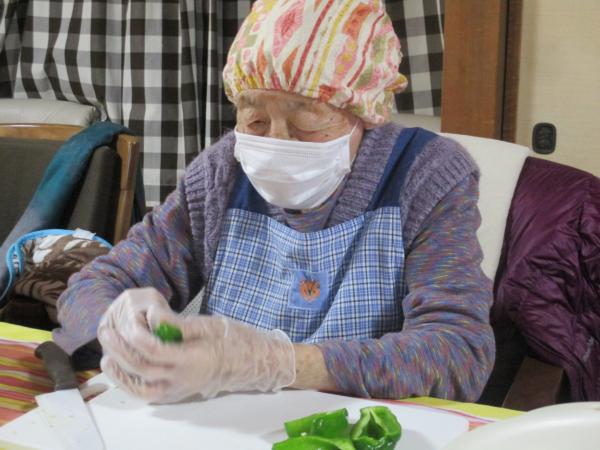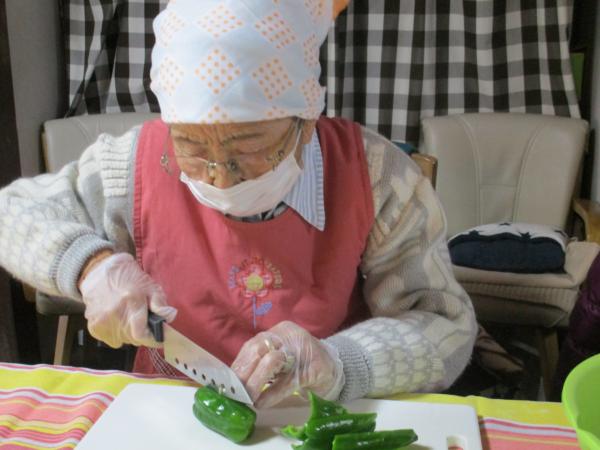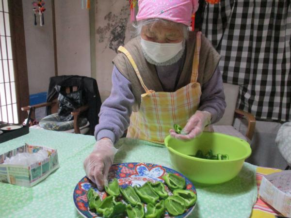 ピーマンの種を取って下さいね。