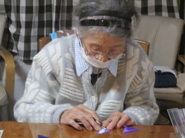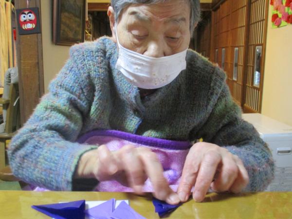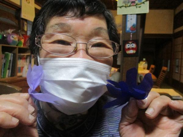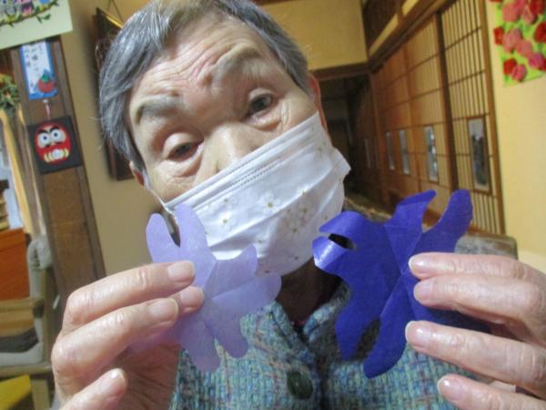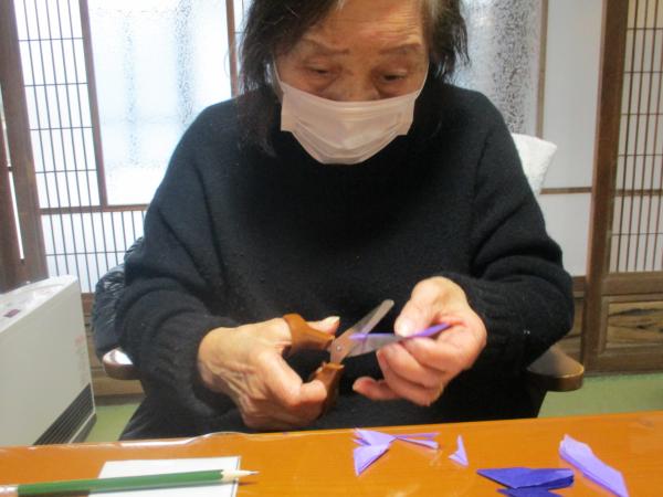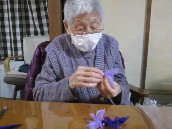 中央をよじって広げるとすみれの花になりました。