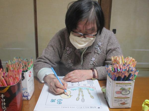 来月のカレンダーの色塗りをしましょう。
