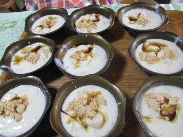 今日の豆乳バナナヨーグルトは黒みつきな粉で和風に