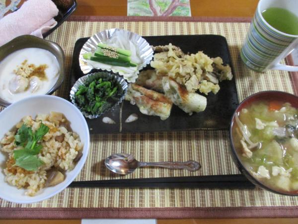 お題が「和食ランチ」の今日は舞茸とちくわの天ぷらを作ります
