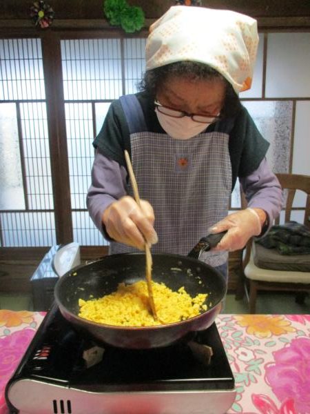 ちらし寿司の上にトッピングする入り卵作り🐤🥚