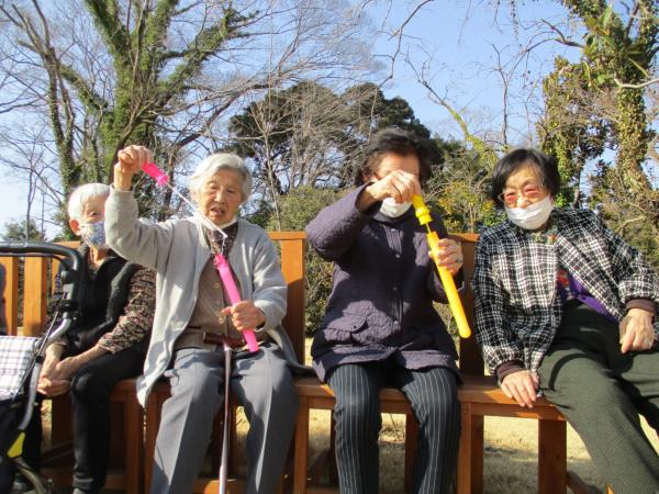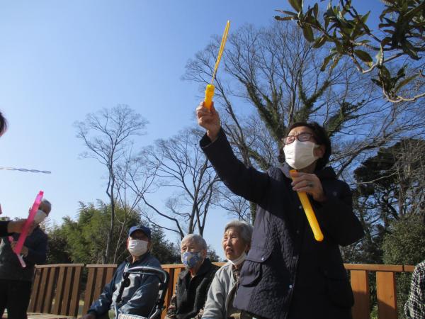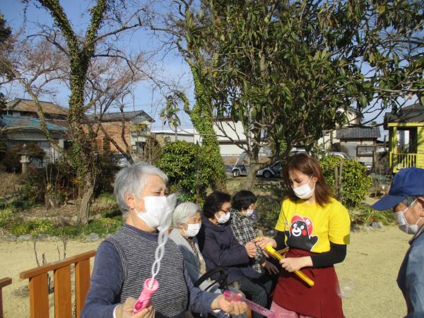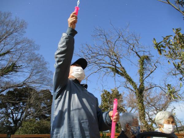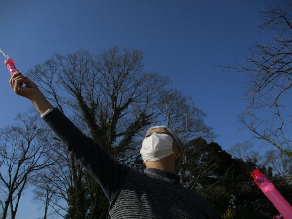風も穏やかなので、シャボン玉を飛ばしてみましょう