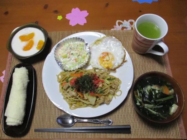 ソースで味付けしたら本日初の焼きそば風スパゲティ完成