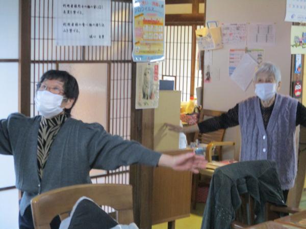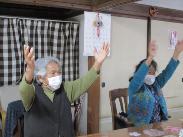バンザイと両腕を上げる事で肩の可動域を広げます。