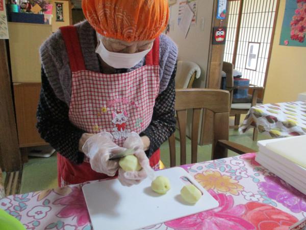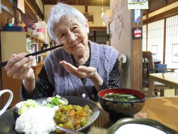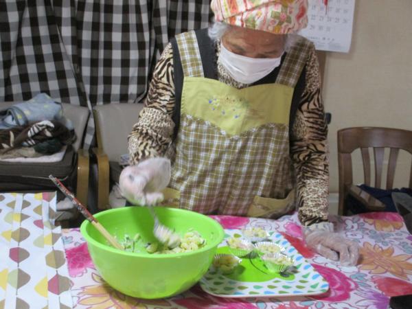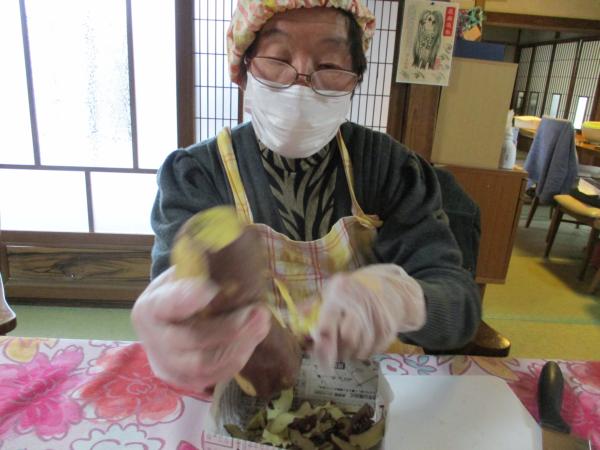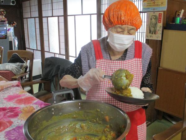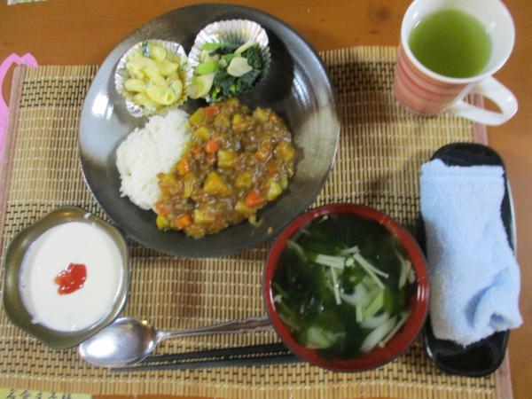 さつま芋カレー、小松菜のポン酢和え、マカロニサラダ、豆乳バナナヨーグルト、わかめスープです。