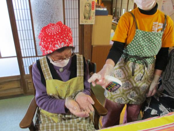 三角巾・マスク・手袋・エプロンつけて