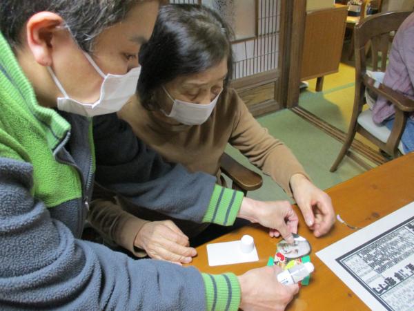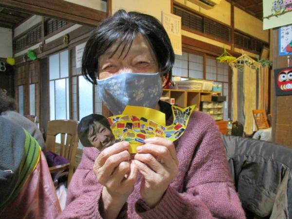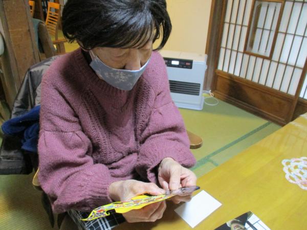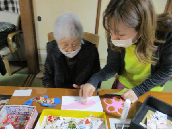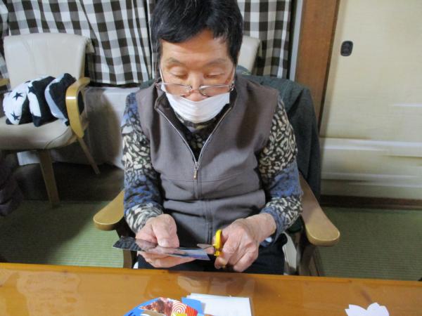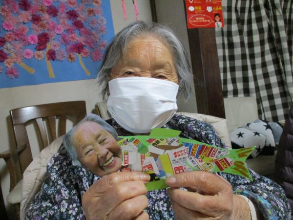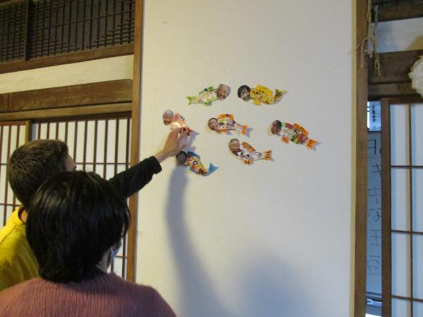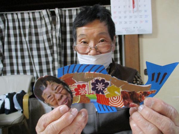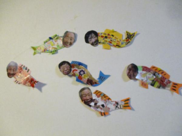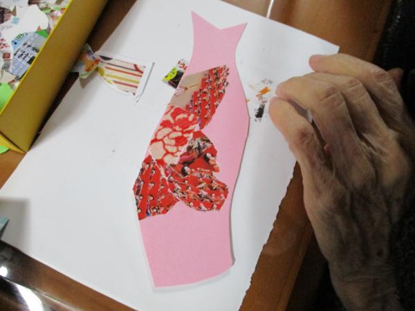鯉のぼりの型に、ちぎった包装紙や広告を貼ってうろこにします🎏