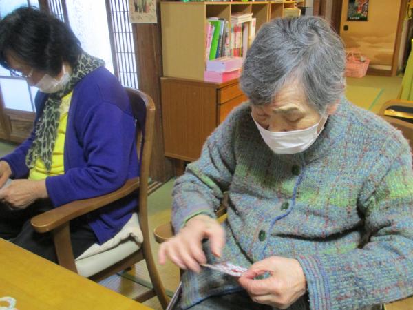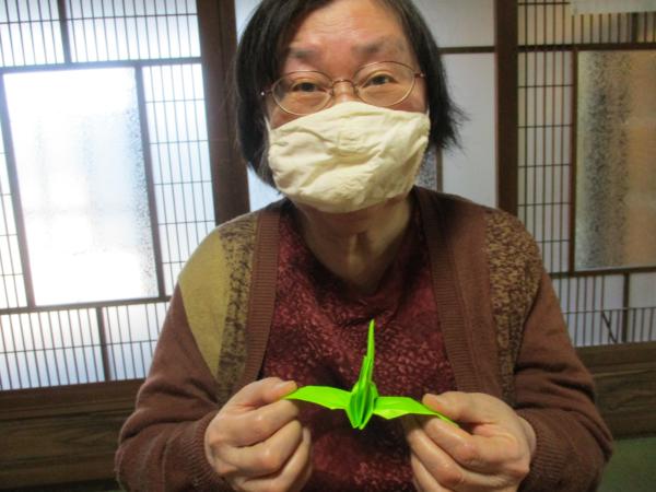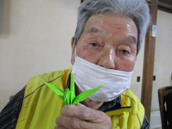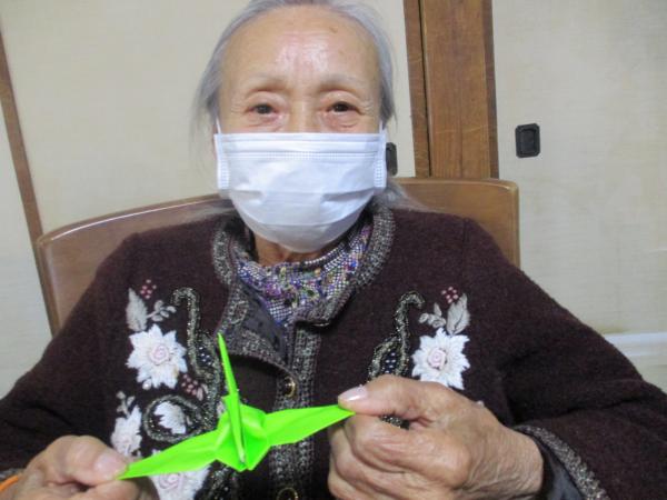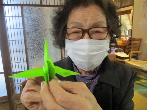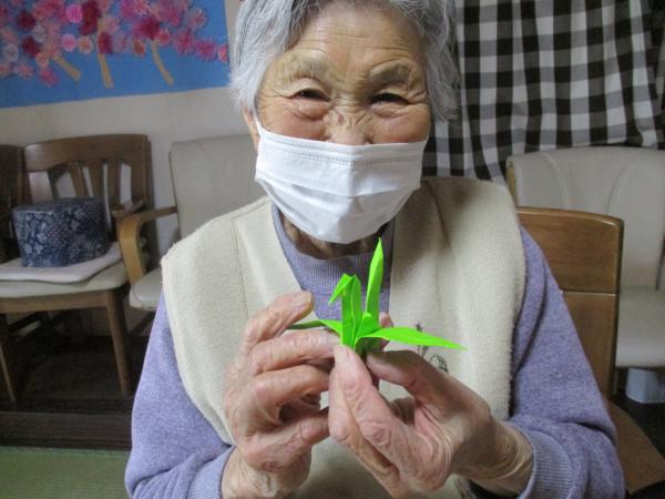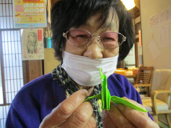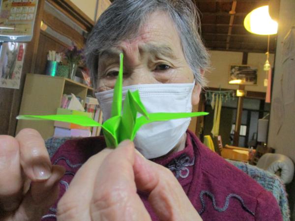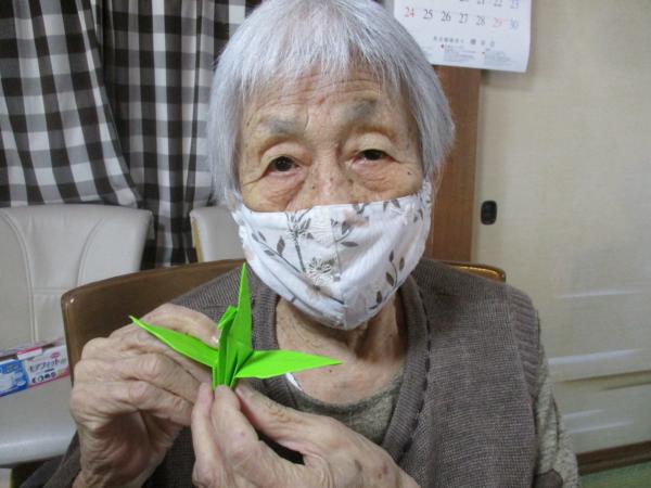 午前中は折り紙で鶴を折りました。