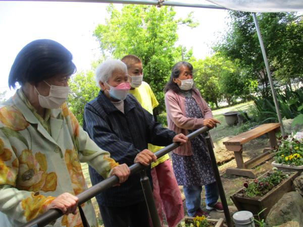 利用者さまも 新緑のマイナスイオンをたっぷり浴びてリフレッシュるんるん (音符)