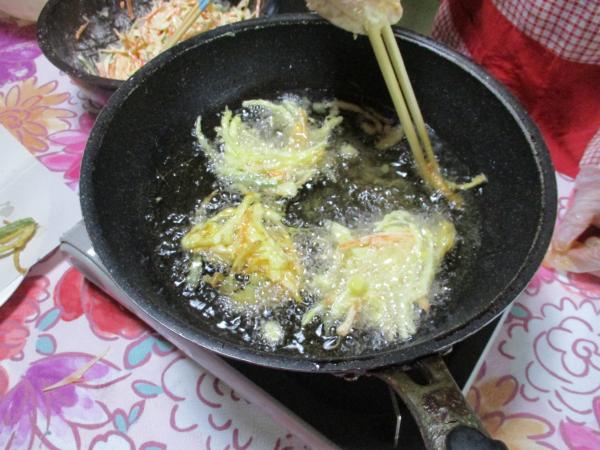 まずは、粉をまぶすそうです。衣は別溶きですexclamation