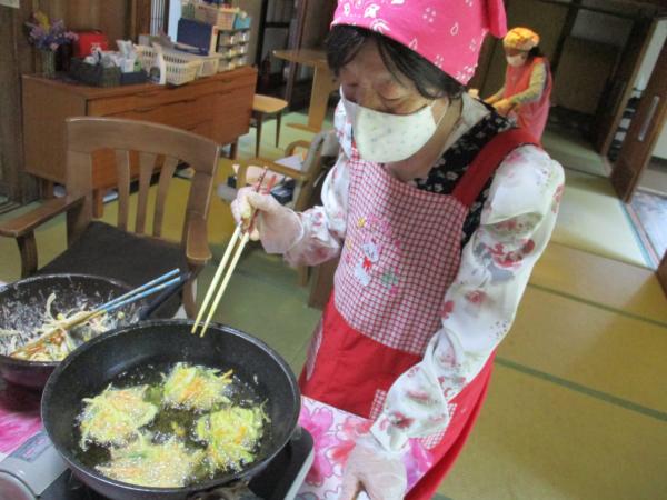 サックサクのかき揚げを熱いうちに召し上がれうれしい顔