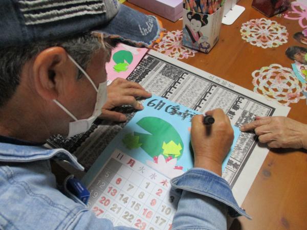 作成中のカレンダーにちゃんと記してくれましたうれしい顔