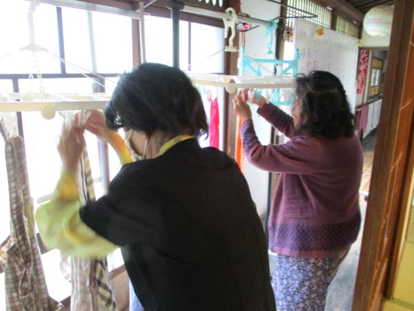 お昼休みには母たちが、手際よく洗濯物を干してくださいます