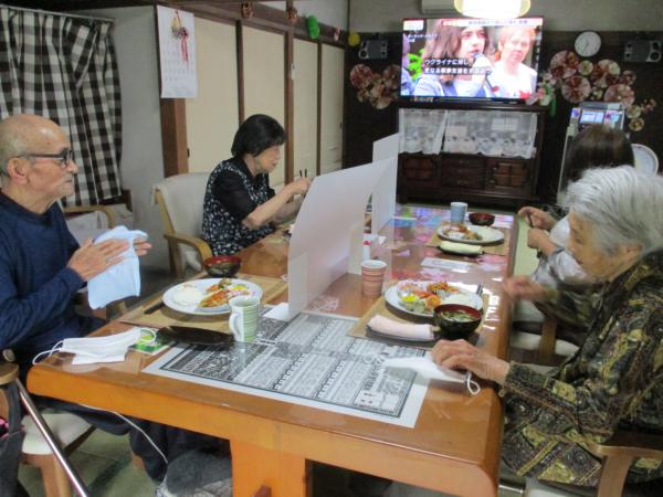 大勢でいただくお食事は、彩りよく種類もたくさん