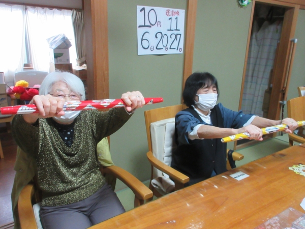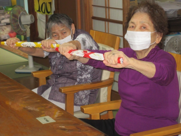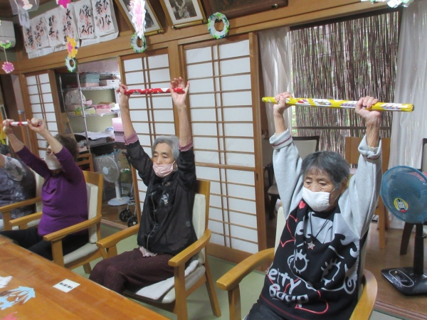 くつろいだ後は体操して筋力低下の予防しましょう