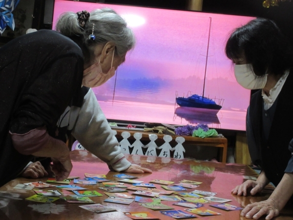 皆で協力して絵札を並べます
