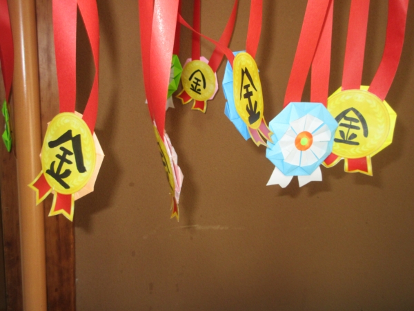 来週10月11日の運動会に向けてメダルを作りました