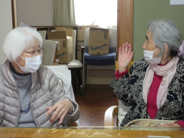 暖かい🍵を飲みながら、楽しそうにお話をしておりました。